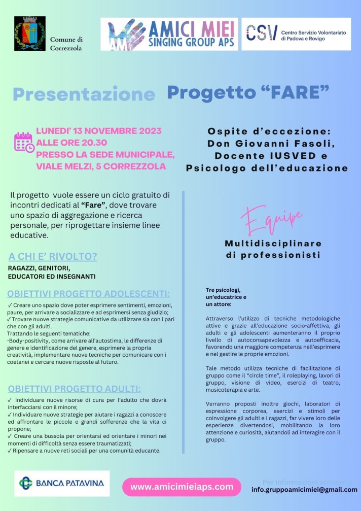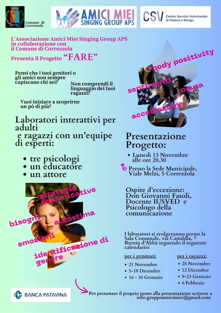 Pomeriggio dedicato a genitori, figli, adolescenti, nonni, insegnanti, educatori, allenatori, tutti per ritrovare Il valore dentro di noi.Vi aspettiamo Domenica 3 Marzo 2024 dalle 15.30 alle 17.30 presso la Sala del Monasterino della Corte Benedettina di Correzzola (PD),accessibile da via Petit Foret o da Viale Melzi. A conclusione del Progetto FARE, un percorso volto a…
